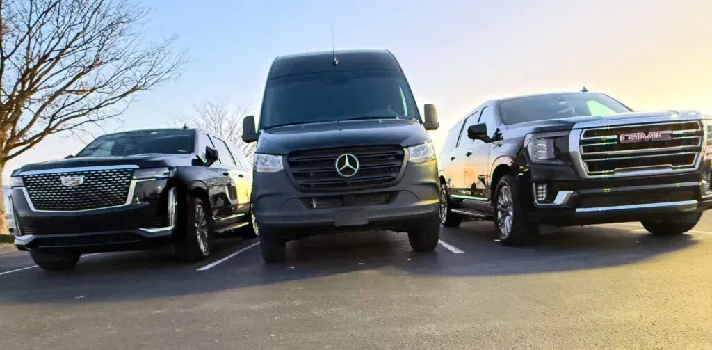 A: Our fleet includes luxury sedans, black SUVs, Chevy Suburban-style vehicles, Sprinter vans, limo-style Sprinters, shuttle buses, and wheelchair-accessible vans.